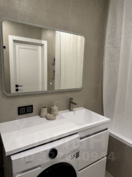 Практичность: Встроенная тумба под раковину, зеркало с подсветкой и полноразмерная стиральная машина. Пол с подогревом.
