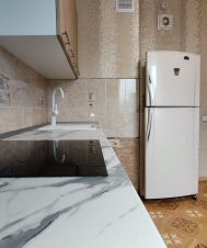 Залитая светом, теплая квартира, добротный ремонт, присутствует раздвижной диван (отличное состояние), полностью обновлен кухонный гарнитур, электрическая варочная панель, холодильник.
