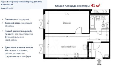 Стильная квартира для пары или одного человека. 15-й этаж из 24. В доме 4 лифта.