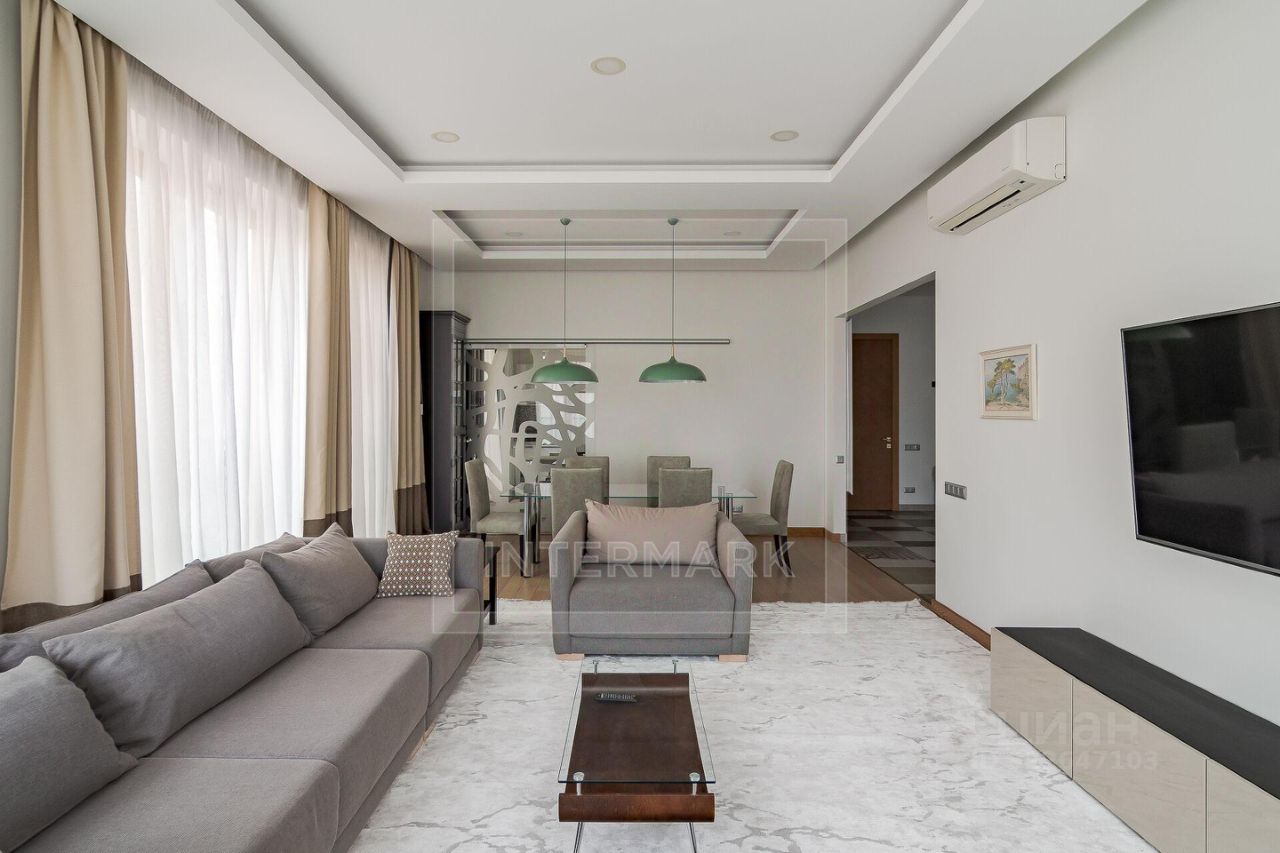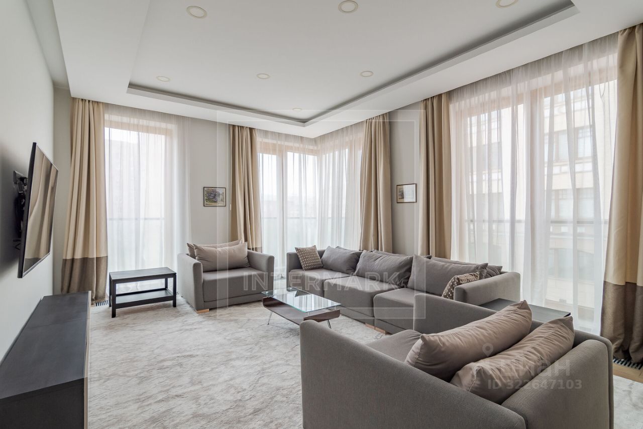 ID 44062: После ремонта семейные 4-комнатные апартаменты в ЖК "Smolensky De Luxe" в 1-м Смоленском пер., д. 21. Клубный дом на 90 квартир с 24/7 охраной, службой сервиса, подземной парковкой, внутренним двориком. Апартамент выполнен в легком современном стиле с исключительно натуральными материалами: деревянная доска на полу, антивандальная краска на стенах, пастельная цветовая гамма в интерьере. Акцент на комфортное проживание семьи с детьми: естественное освещение (окна широкие в пол), практичность мебели, функциональность оборудования и планировки пространства. Квартира полностью меблирована (вывоз обсуждается), продуманы места для хранения - высокие глубокие шкафы и гардеробная, оснащена бытовой техникой, кондиционерами, увлажнителем воздуха. Установлен высокоскоростной интернет (1Гбит/сек). Общая площадь 168 квм., гостиная, кухня с отдельным входом и раздвижной дверью в гостиную, 3 спальни, 2 ванные комнаты (ванна, душ), гостевой туалет со стиральной машиной, гардеробная, 2 лоджии. Окна выходят на две стороны (юг и запад). Потолки 3,20 м. Одно м/м на -2 уровне подземного гаража включено в стоимость. В доме располагается супермаркет ВкусВилл, химчистка, студия танца. В шаговой доступности торговые центры, спортклубы, государственные школы и детсады, м. Смоленская и культурная жизнь города (театры, музеи). Только долгосрочная аренда. Можно с детьми. Строго без животных.
