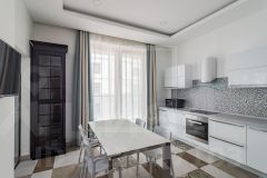 В квартире: С мебелью, М/место в подземном паркинге, Готовы меблировать, Посудомоечная машина, Стиральная машина, Бойлер, Душевая кабина, Теплые полы, Кондиционер, Видеонаблюдение, Охрана, Интернет, Балкон, Можно с детьми, Изолированная кухня, Ванна, Апартаменты, Лифт, Ремонт - дизайнерский, Кухонная мебель, Окна на улицу, Окна во двор