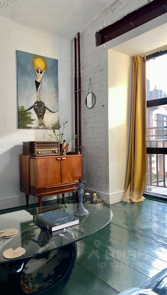 О самой студии- 45 кв.м, оригинальный дизайн-проект в стиле лофт, большие окна в пол, кирпичные стены из Гончаровского кирпича с клеймом, открытые балки и трубы. Полы деревянные- лиственница. В квартире вся необходимая мебель, бытовая техника, бар с подсветкой, виниловый проигрыватель, посуда, много винтажа, антиквариата и предметов искусства, привезённых со всего мира.