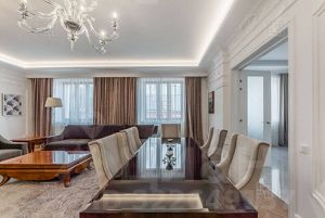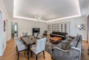 В клубном малоквартирном доме Леонтьевского переулка предлагается превосходная квартира с новым дорогим дизайнерским ремонтом. Просторная гостиная, три изолированные спальни, 3 больших полноценных сан. узла, 4 гардеробные и постирочная. Ремонт выполнен из натуральных материалов (Roberto Cavalli), установлена современная японская приточная система вентиляции с очисткой воздуха, система кондиционирования, теплые полы. Квартира полностью укомплектована новой мебелью, сантехникой и бытовой техникой (Miele). Территория дома огорожена, круглосуточная охрана. Одно машино-место входит в стоимость. Возможна оплата по безналу. Достойное предложение в тихом центре города.