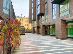 Презентабельный ресепшн и лобби с консьержем, зеленый двор с зоной отдыха для взрослых и детей.
