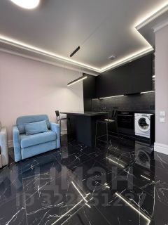В квартире выполнен качественный евро ремонт, натяжные потолки с подсветкой, пол тёплый по всей кв, на лоджии и санузеле. Кухня объединена со спальной комнатой.