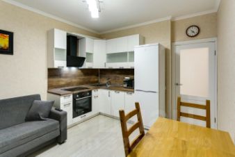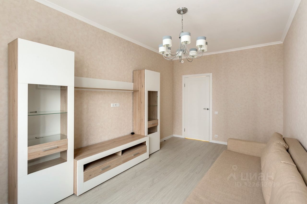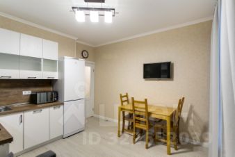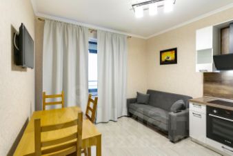 Просторная прихожая с большим шкафом, кухня-гостиная с выходом на лоджию, комната, совмещенный санузел.