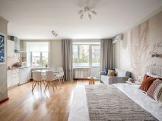 Современная 1-комнатная квартира премиум-класса на Верхней улице в шаговой близости от метро Белорусская. Квартира расположена в историческом центре Москвы недалеко от самой знаменитой улицы Москвы - Тверской. В шаговой доступности - Московский зоопарк, спорткомплекс Олимпийский и Выставочный центр Экспоцентр на Красной Пресне.