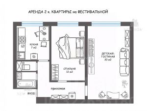 МЕБЛИРОВАННАЯ 2 к. КВАРТИРА на ФЕСТИВАЛЬНОЙ