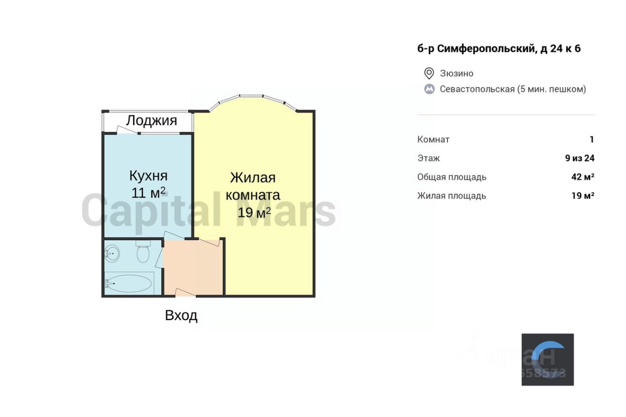 Менее чем в 10 минутах ходьбы от метро "Каховская" предлагается уютная однокомнатная квартира. В комнате отсутствует мебель: собственник готов предоставить частичный набор мебели или приобрести спальное место для жильца. Оптимальный климат поможет поддерживать кондиционер. Кухня с гарнитуром цвета натурального дерева располагает духовой и СВЧ-печами, холодильником. В ванной комнате - стиральная машина.