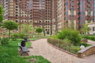 Дом бизнес-класса с круглосуточной охраной, красивой входной группой и благоустроенной территорией с детской площадкой.