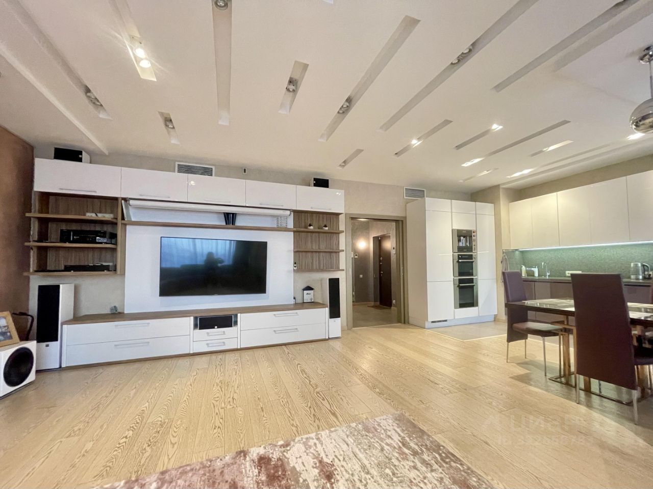 - Полный комплект бытовой техники: варочная панель, духовой шкаф, микроволновая печь, кофемашина, вытяжка, два холодильника (De Dietrich и Bosch);
