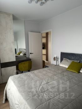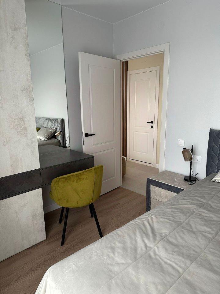 Спальная комната 1: оснащена двуспальной кроватью с прикроватными тумбами и системой хранения, которая расположена по одной стороне стены. В данной комнате есть зеркало с небольшой отведенной полкой для личных средств.