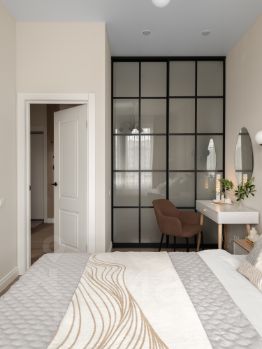 В ванной - теплый пол. В спальне - вместительная гардеробная.