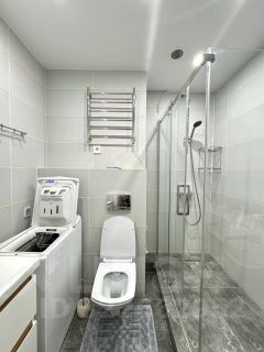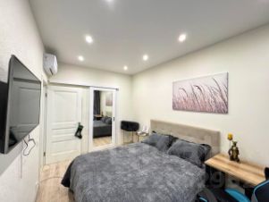 Квартира полностью меблирована и готова к проживанию. Просторная кухня площадью 12 кв. м оснащена всей необходимой техникой: холодильником, посудомоечной машиной и кондиционером. В комнате также есть кондиционер и телевизор. В ванной комнате установлена современная душевая кабина и стиральная машина, что делает быт более комфортным.