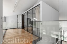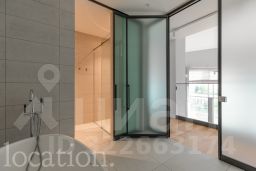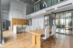 Ключевой особенностью объекта является редкая планировка с панорамным остеклением во всю высоту и двусветной гостиной с потолками 9 метров, что создает ощущение простора и наполняет пространство обилием естественного света.