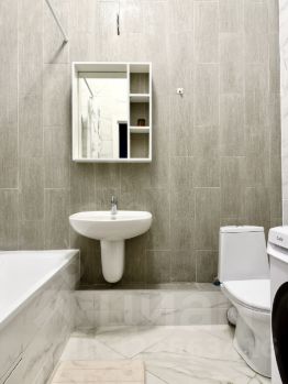 - Светлая ванная комната с современной сантехникой.