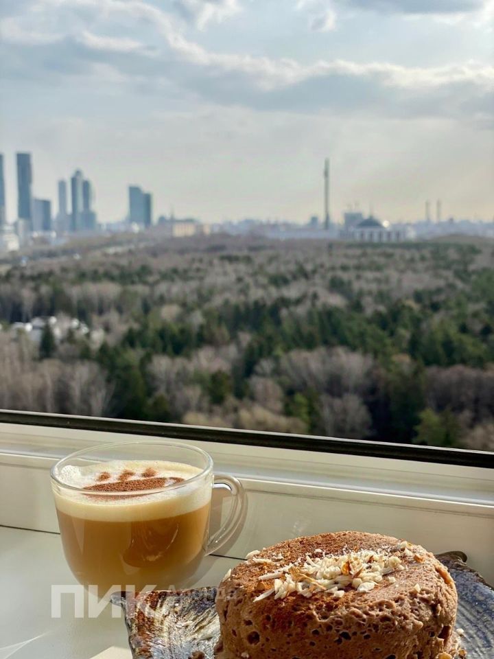 Из окон открывается шикарная панорама Москвы-Сити, Поклонной горы и центра города — особенно красиво вечером, когда зажигаются огни столицы.