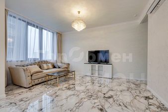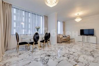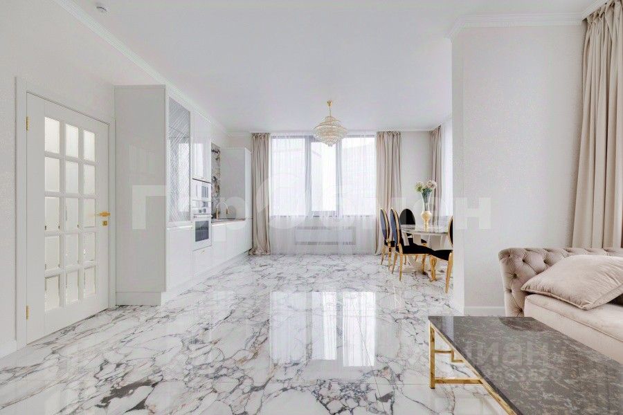 Выполнен высококачественный дизайнерский ремонт из дорогих материалов. Стены и потолок - стильная фактурная венецианская штукатурка с золотом ручной работы, пол выполнен из крупноформатного керамогранита под мрамор. Подоконники для окон в 3 метра выполнены из натурального камня кварцевые. Двери межкомнатные изготовлены из натурального материала: массив дерева. Премиум люстры дизайнерские с кристаллами Swarovski и свет производства Италия.