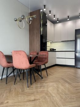 Сдаётся стильная современная двухкомнатная квартира с дизайнерским ремонтом в современном жилом комплексе. Общая площадь — 40 кв. м. Квартира расположена на 17 этаже 24-этажного монолитного дома. Высокие потолки в 3 метра создают ощущение простора и уюта. Из окон открывается прекрасный вид на закрытый двор и реку. Возле дома прекрасный бульвар и набережная для прогулок.
