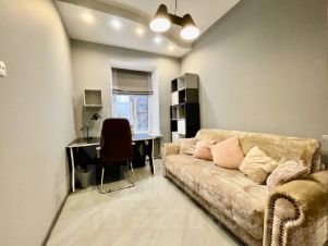 Планировочное решение квартиры: Кухня-гостиная оснащена всей необходимой бытовой техникой (холодильник, морозильник, варочная панель, посудомоечная машина....), встроенные шкафы, угловой диван. Хозяйская спальня - огромная кровать 2 х 2.2 м. В прихожей гардеробная комнатой. Кабинет или комната свободного назначения. Раздельный санузел. Из окон вид в тихий двор.