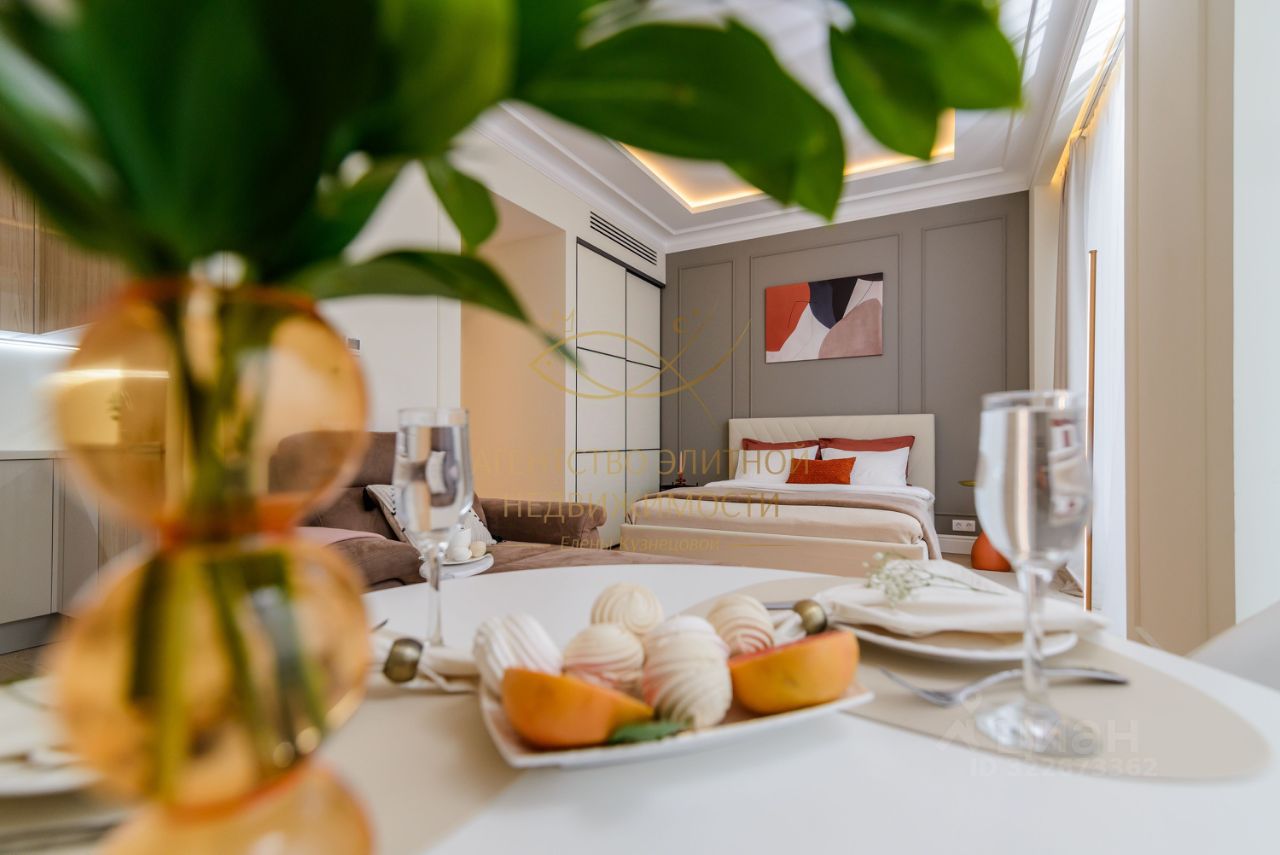 Функциональная планировка: просторная комната, в которой предусмотрены двуспальная кровать с ортопедическим матрасом, совмещённый санузел с душевой кабиной, просторный холл с тремя вместительными встроенными шкафами. Квартира полностью меблирована и оснащена всей необходимой бытовой техникой. Предусмотрено много мест для хранения. Мебель от ведущих дизайнерских бюро.