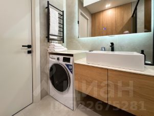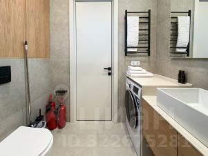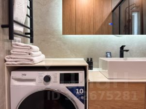 - Ванная комната с санузлом зеркало с подсветкой, раковиной, стиральной машиной.