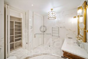 Кухонный гарнитур- Gulia Novars, стол Living by Christiane Lemieux, вентиляция и декоративная подсветка с возможностью управления с iOS и Android, гостевой санузел, постирочная и ванная комната обставлены итальянским, английским и американским санфаянсом