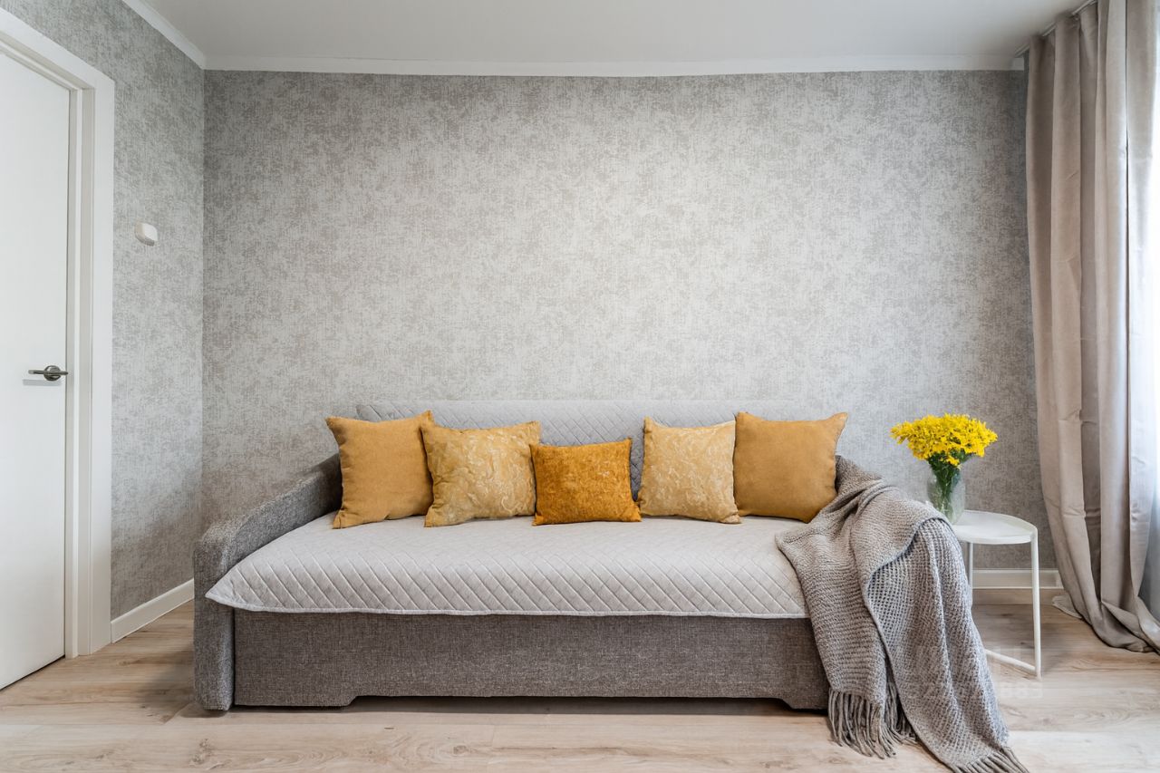 — 45 м², 2 комнаты: спальня и гостиная с кухней