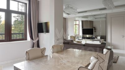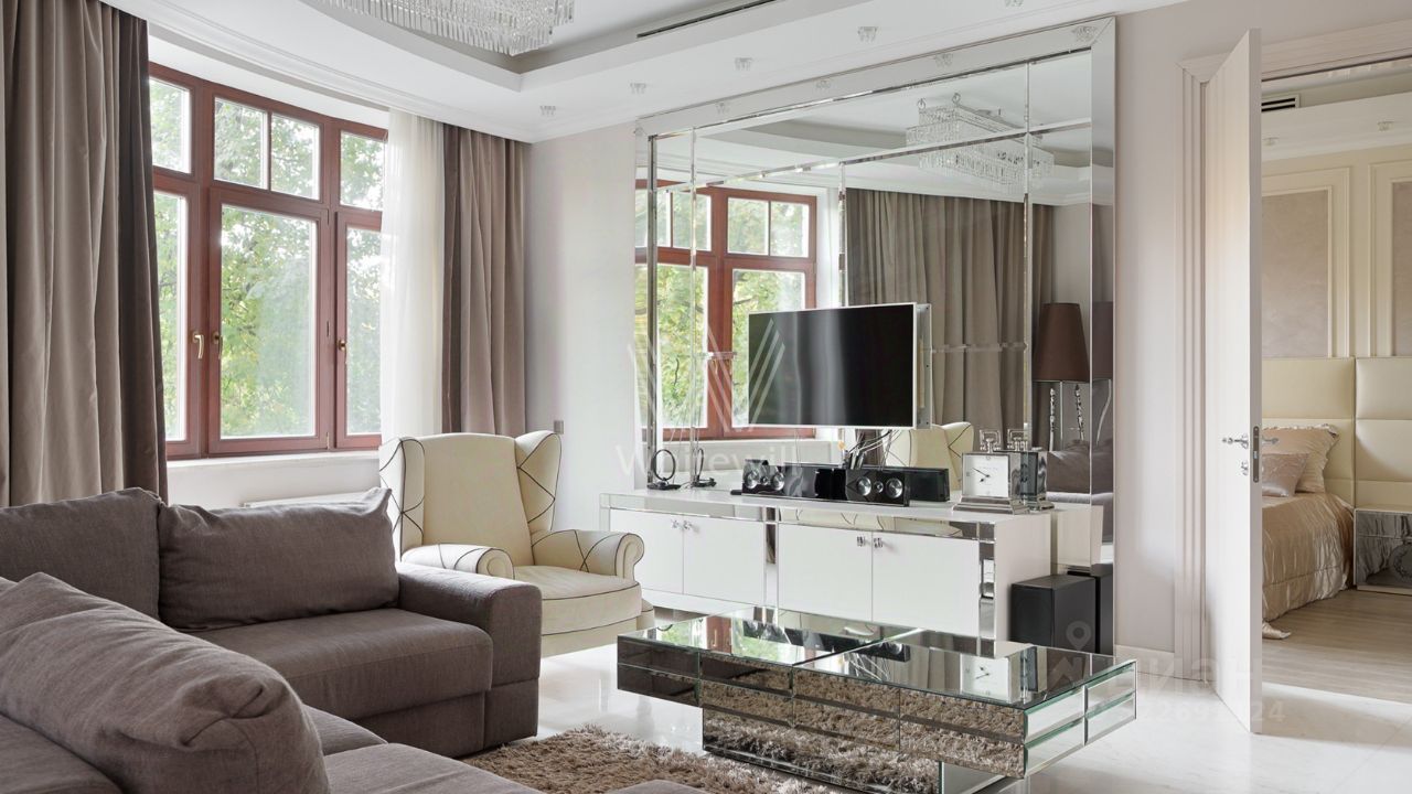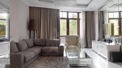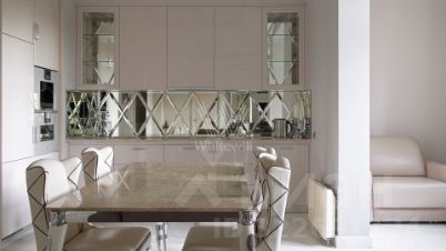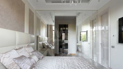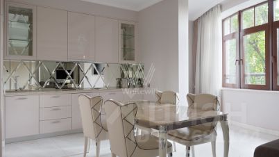 Бонус партнёрам 50%. Квартира с одной спальней общей площадью 110 м² в комплексе "Дом на Трубецкой". Выполнен дизайнерский ремонт с использованием натурального дерева, камня и стекла. Интерьер оформлен в светлых пастельных тонах, стены украшены большими зеркалами и картинами. Квартира полностью укомплектована мягкой мебелью, встроенная кухня оборудована техникой премиум-класса.