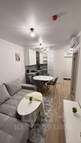 Квартира полностью готова к проживанию: выполнен евроремонт. В помещении установлена современная мебель и вся необходимая техника: кондиционер, холодильник, посудомоечная машина, телевизор и стиральная машина. Ванная комната оборудована ванной, санузел совмещенный. На кухне есть всё для комфортного приготовления пищи.