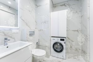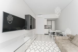 Студийная планировка совместила в единое пространство полностью оборудованную современной бытовой техникой кухню и зону гостиной с удобной мебелью. Спальня оснащена всем необходимым для комфорта. Вторая комната свободного назначения, которую можно использовать под кабинет, детскую или гостевую комнату. Два санузла (один полноценный (ванна), второй гостевой) оборудованы качественной европейской сантехникой. Предусмотрено много мест хранения - встроенных шкафов. Установлены: система кондиционирования, теплый пол; бойлер.