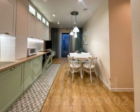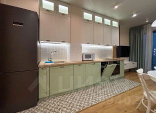 Отличная кухня-гостиная с раскладным диваном, телевизором, обеденной зоной и отличным кухонным гарнитуром: посудомоечная машина, духовой шкаф, свч, холодильник, фильтры для воды. Теплый пол во всей прихожей и кухне.