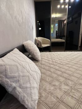 Квартира с дизайнерским ремонтом, что придаст вашему проживанию комфорт и эстетическое удовольствие. В просторной комнате и на кухне есть вся необходимая мебель, новый удобный матрас, много мест хранения. Кухня оборудована современной техникой. В комнате установлен телевизор, кондиционер, в ванной — душевая кабина с новым современным тропическим душем. В санузле находится бойлер, новые стиральная машина и унитаз (с подсветкой). Окна выходят во двор, что обеспечивает тишину и уют.