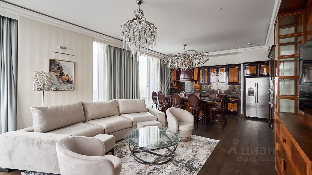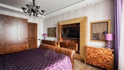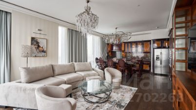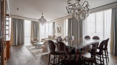 Видовая квартира с 3-мя спальнями площадью 170 м² в комплексе бизнес-класса "Дом на Мосфильмовской". Квартира расположена на 36-м этаже в башне А. Выполнен дизайнерский ремонт в классическом стиле в теплых тонах с использованием премиальных материалов. Благодаря угловому панорамному остеклению и потолкам высотой 3,4 метра пространство наполнено естественным светом и воздухом.