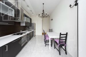 Выполнен дизайнерский ремонт с использованием материалов премиум-класса, система "теплый пол" создает дополнительный комфорт. Кухня оснащена современной техникой. Предоставляется вся необходимая мебель. Во всех комнатах организованы удобные системы хранения: большие встроенные зеркальные шкафы-купе. Из жилых помещений и кухни выход на изящные французские балкончики с панорамным видом на Чистые пруды.