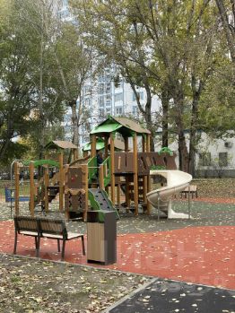 - расположен дом в очень зелёном дворе, окна выходят на тихую сторону