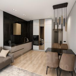 - функциональную кухню-гостиную, площадью 18,5 м2, с комфортной и элегантной гостиной зоной,