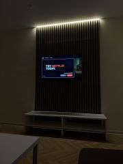 Комната: большой шкаф-купе с зеркалами, ТВ, диван с механизмом дельфин (удобное двуспальное место), утюг, гладильная доска.