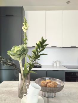 Бытoвaя техникa: стиральная машина, холодильник, варочная панель, духовой шкаф телевизор, электрический чайник, посудомоечная машина.