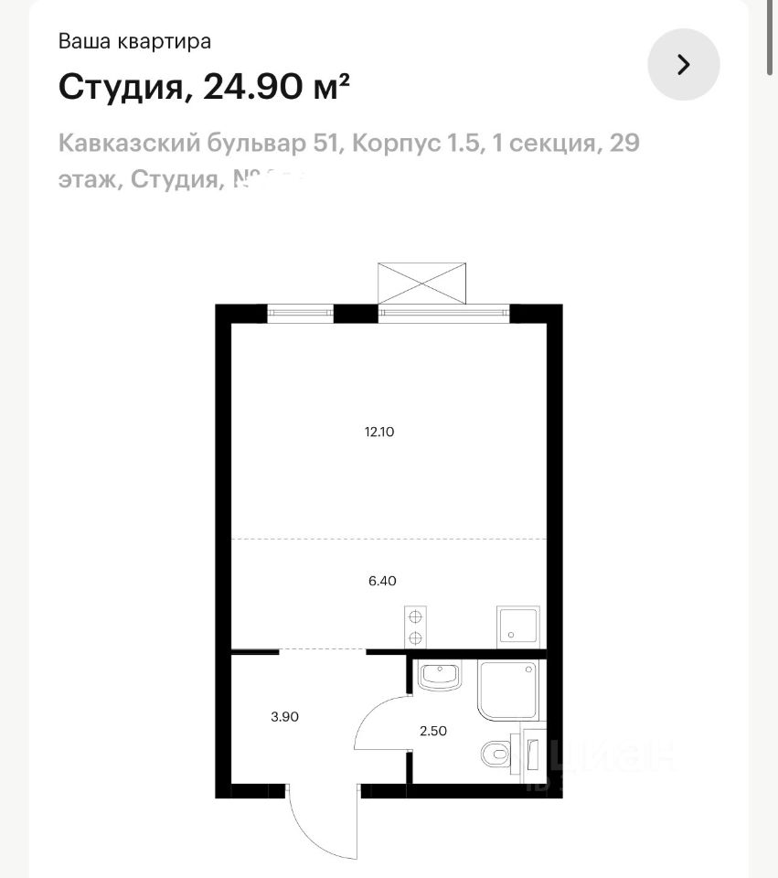 Сдается просторная студия в новом доме по адресу: Москва, Кавказский бульвар, д. 51к1.