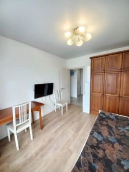 • Спальня 10,5 кв.м: диван на два спальных места раскрадывающийся, с ящиками для хранения, большой шкаф, этажерка, рабочий стол, телевизор.