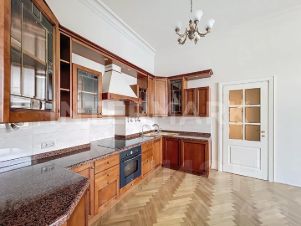 ID 13988. Роскошная 6-ти комнатная квартира в дореволюционном особняке в самом центре Москвы - в Романовом переулке. В квартире делают современный авторский ремонт из дорогих и качественных материалов. Полная комплектация бытовой техникой. Предлагается без мебели. Установлен кондиционер, теплые полы, дровяной камин. Функциональная планировка: общая площадь 320 кв.м., гостиная, кухня, 3 спальни, 3 ванные комнаты, кабинет, детская комната. Окна выходят на 3 стороны, высота потолков больше 3-х метров. В доме работает круглосуточная охрана, в подъезде установлен домофон. Охраняемое парковочное место во дворе дома входит в стоимость. В ближайшем доступе: кафе, магазины, рестораны, бары, магазины, салоны красоты, музеи, театры и галереи. Можно с детьми. Можно с животными.