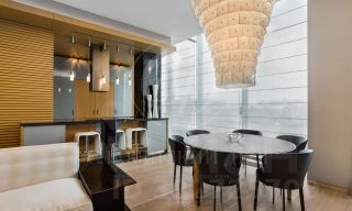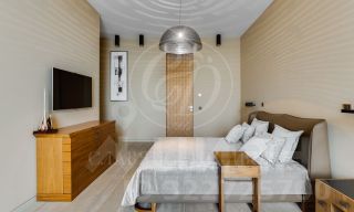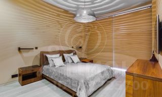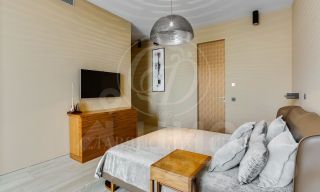 Особенности планировки - 1 спальня может трансформироваться по желанию в спальню и в кабинет с выдвижной стеной на пульте, диван-кровать в кабинете, мастер-ванная с музыкой, гостевой санузел, две гардеробные.
