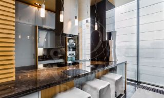Мебель "Giorgetti", система умный дом, система очистки воздуха и кондиционирования (три независимые системы кондиционирования, принудительная приточно-вытяжная вентиляция: очищенный, подогретый, увлажненный воздух 1000м^3 в час.), звукоизоляция, музыка Hi-end для ценителей, система очистки воды, спутниковое ТВ, интернет.