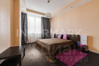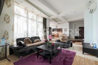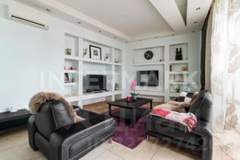 ID 43265. Восхитительная 3-комнатная квартира в элитном жилом комплексе. Квартира предлагается с современным ремонтом и дизайном по индивидуальному проекту, полностью оборудована бытовой техникой от ведущих мировых производителей. Кондиционеры во всех комнатах. Функциональная планировка: общая площадь 135 кв. м, гостиная-кухня, спальни: 2, ванные комнаты: 1,5, гардеробная комната, застекленная лоджия, холл. Окна выходят на 2 стороны, высота потолков 3 м. Огороженная охраняемая территория, консьерж. Подземный паркинг, есть 1 машино-место . Дом расположен в зеленом тихом районе, рядом метро, школы, детский сад, торговые центры, кафе и магазины. Можно с детьми. Можно с животными.