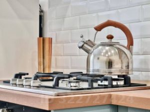 Просторная кухня оснащена современной мебелью и всей необходимой техникой: холодильником, посудомоечной машиной. Есть стиральная машина.