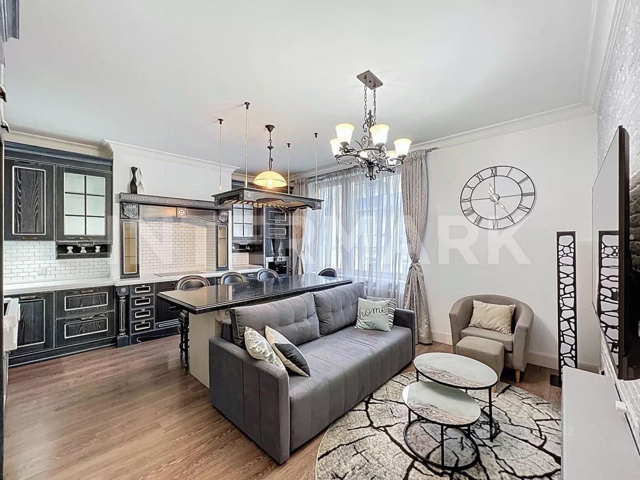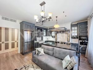 ID 41959. Стильная 3-комнатная квартира в охраняемом доме с подземным паркингом. Предлагается после дизайнерского ремонта. Квартира полностью меблирована и укомплектована техникой, включая кондиционирование, подогрев полов, посудомоечную машину, бойлер, сигнализацию. Общая площадь: 84 кв. м. Планировка: кухня-гостиная, спальня, вторая спальня или кабинет, ванная комната оборудована ванной и душевой кабиной. Потолки 3,1 м. Есть внутренний дворик с ландшафтным дизайном и скамейками для отдыха. Машино-место в подземном паркинге входит в стоимость. С детьми можно. С животными можно.
