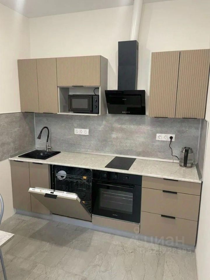 Квартира полностью мебелирована: спальные места в виде двухспальной кровати и дивана, места для хранения одежды, кухонный гарнитур и обеденная зона. Так же есть вся необходимая техника: кондиционер, холодильник, плита, микроволновка, стиральная машина, посудомоечная машина.