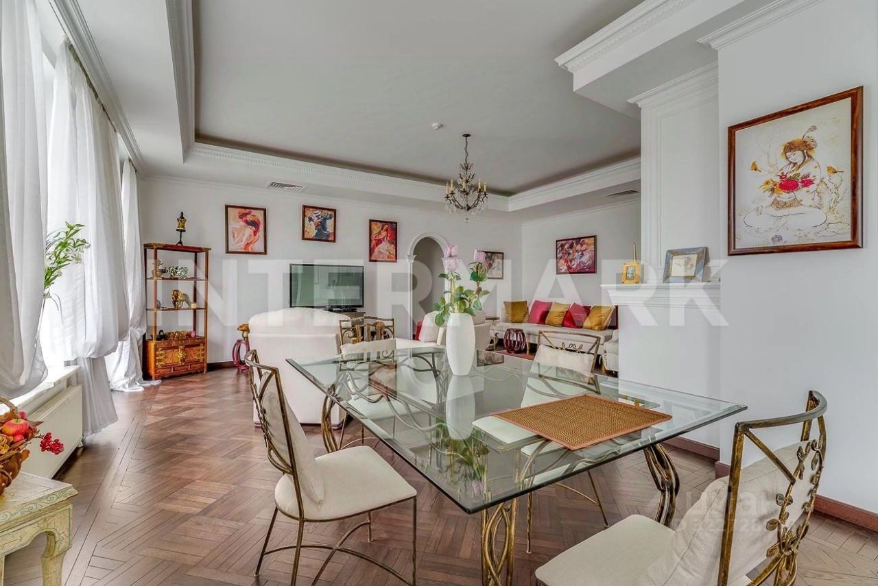 ID 20673. Светлая 3-комнатная квартира в одном из самых лучших домов Москвы, расположенном в районе Красной Пресни. Квартира предлагается полностью меблированной и оборудованной к проживанию. Кондиционеры, подогрев полов, видеодомофон, джакузи, камин. Общая площадь: 150 кв. м. Планировка: просторная гостиная, две большие спальни, две полноценные ванные комнаты и гостевой туалет. Приятный вид из окон. Жителям комплекса доступна такая инфраструктура как бассейн (18 метров), русская и турецкая бани, тренажерный зал. Профессиональная охрана. Рядом уютный Георгиевский сквер. Одно машиноместо в подземном паркинге.