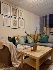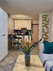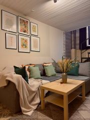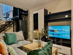 На втором уровне вы найдете уютную спальню, а на первом уровне расположена уютная гостиная, где вы можете провести вечер, расслабиться на диване и наслаждаться просмотром любимых фильмов. В апартаментах есть 4 удобных спальных места — кровать для двоих и комфортный диван, который легко трансформируется в дополнительную кровать.